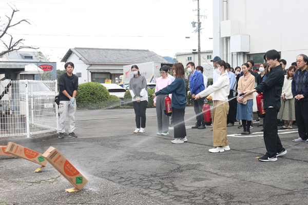避難経路の確認に加え、実際に屋内消火栓や消火器を使った初期消火の訓練も実施し、いざという時に落ち着いて行動できるよう改めて意識を高めました。